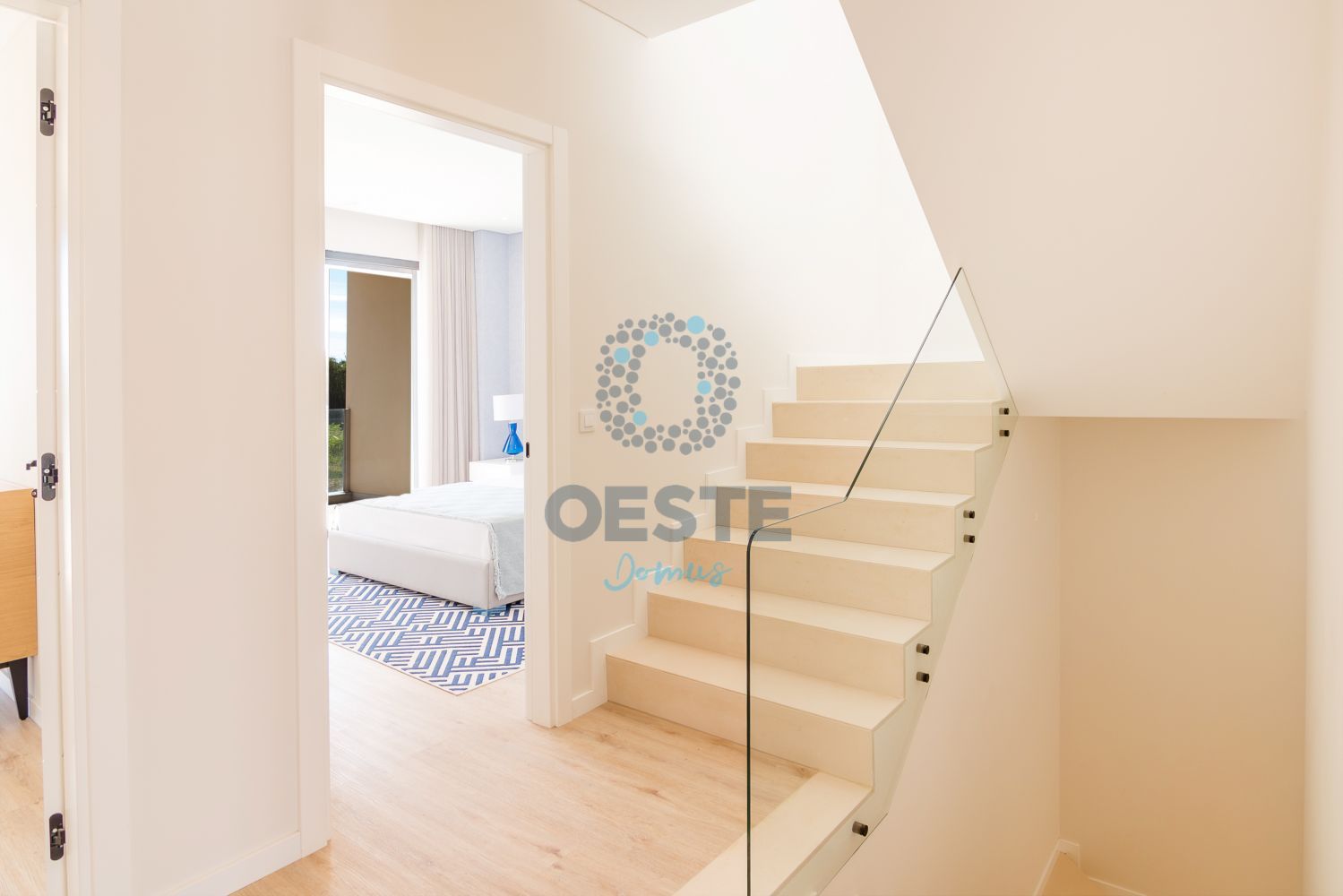 Suítes de Luxo: No primeiro andar, acessível por elegantes escadas em Silestone, encontrará duas suítes pensadas para o máximo relaxamento, complementadas por dois quartos generosos e um espaço flexível (+1) ideal para o seu novo home office.