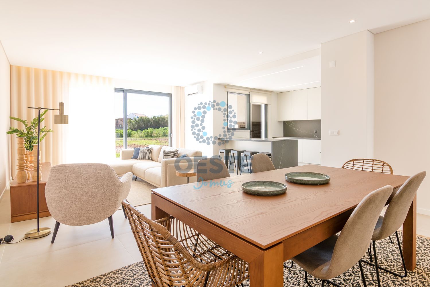 Conceito Open-Space: Uma sala inundada de luz que se funde com uma cozinha de sonho, totalmente equipada com tecnologia de ponta e acabamentos em madeira nobre.