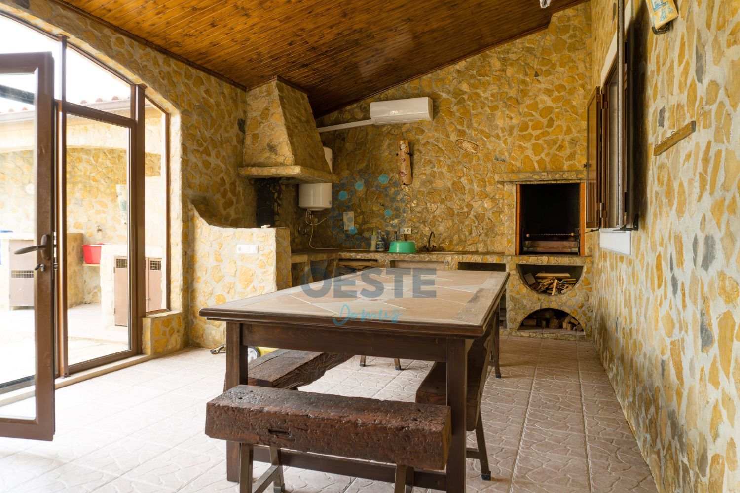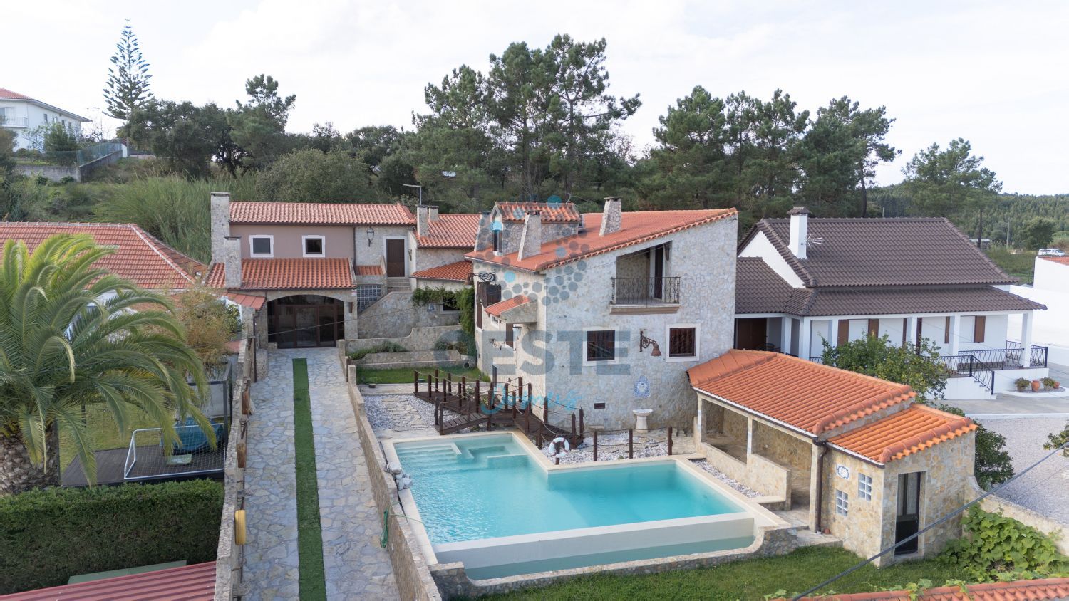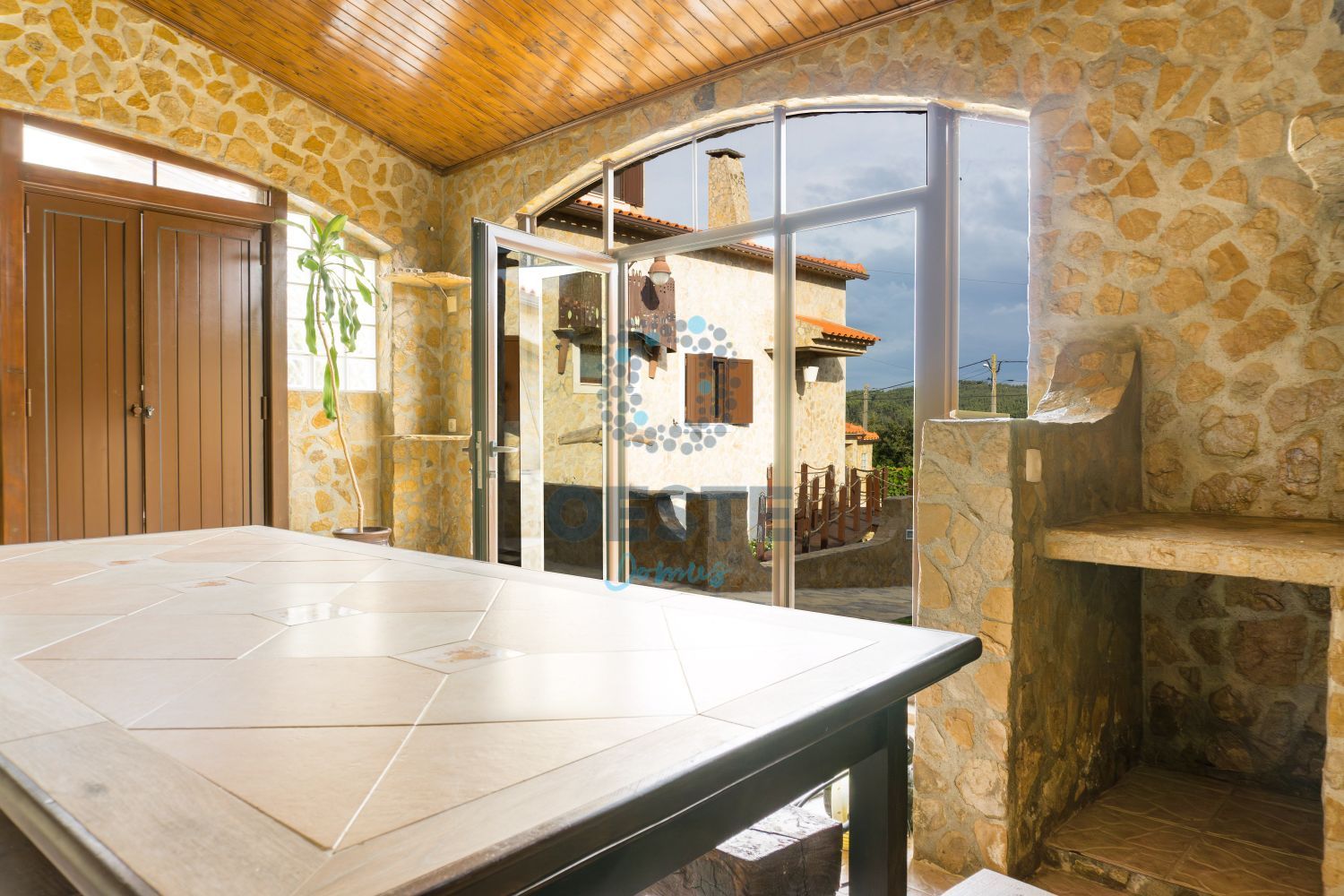 ✨ Luxo Rústico e Exclusividade em Pêro Moniz, Cadaval Descubra esta magnífica moradia T5, onde a nobreza da pedra natural e da madeira se fundem num design único de excelência. Uma propriedade totalmente murada que oferece privacidade absoluta e um estilo de vida sofisticado a apenas 5 minutos do centro do Cadaval. ? Destaques que Apaixonam: Construção de Elite: Revestimento integral em pedra (interior/exterior) e acabamentos premium em madeira. Oásis Exterior: Piscina de água salgada com jacuzzi, jardim cuidado, passadiços e alpendre para lazer. Conforto Térmico Superior: Ar condicionado, lareira, várias salamandras, janelas de vidro duplo e portadas em PVC de alta qualidade. Suíte Master de Sonho: Com 67,5m², lareira privativa, closet e hidromassagem. Lazer Privativo: Salão de jogos (67,8m²) e bar exclusivo com AC no piso superior. Funcionalidade: Cozinha equipada + Sala de refeições com forno a lenha e churrasqueira. Vistas Deslumbrantes: Panorama privilegiado sobre a Serra do Montejunto. ? Áreas e Comodidades: R/C: 3 Quartos (com salamandras), Sala de Estar (53m²), Atelier, Lavandaria e 2 WC. 1º Andar: Suíte Master, Salão de Jogos, Bar e Escritório. Exterior: Estacionamento para 3 viaturas, poço com água abundante e casa das máquinas. Localização Perfeita: Sossego absoluto com proximidade total a comércio, serviços e escolas (5 min). Viva o privilégio de morar numa casa com alma. Agende a sua visita agora!